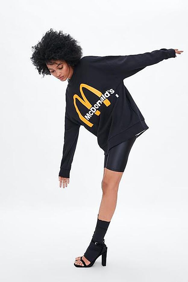 La otra pieza de la línea McDonalds de Zara es una sudadera negra (22.95 euros) con el inconfundible logo de la cadena de 'fast food' y que, como la camiseta, también es unisex.