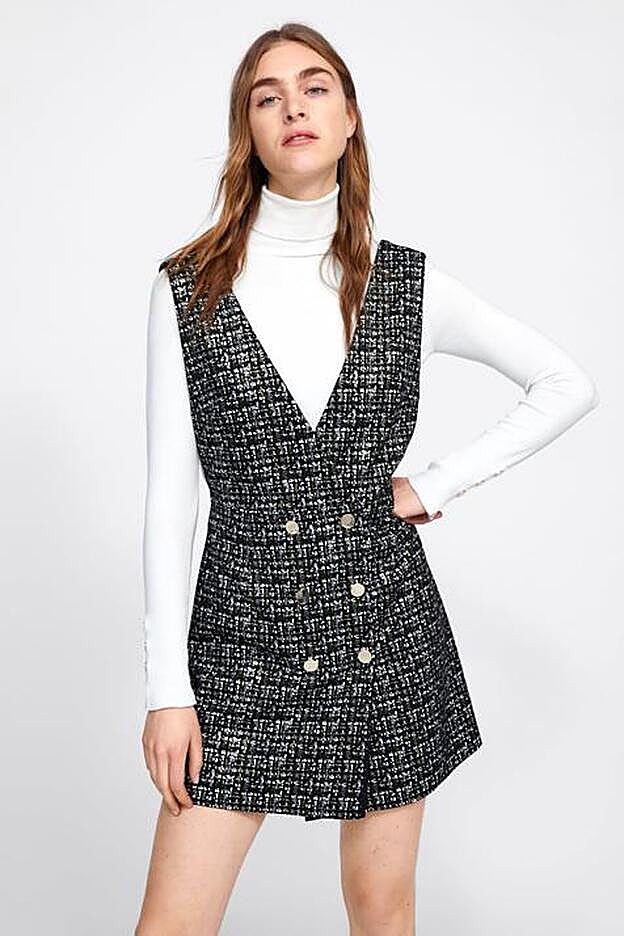 En este caso, Sara Carbonero, además del jersey, le superpone un abrigo blanco y apuesta por unas botas negras altas, pero lo cierto es que este pichi setentero de Zara nos ofrece un sinfín de combinaciones para conseguir looks perfectos 24/7: con una camisa blanca, blazer y mocasines para un look 'working girl'; con un jersey negro de cuello vuelto y botines, para darle un toque más sobrio; sin nada debajo y taconazo, para un look sexy de noche; con un top lencero del que solo se vea el encaje, para una cena especial; con un cárdigan de lana gordito para un estilismo 'comfy'; e incluso con una camiseta con mensaje y zapatillas blancas, para un look de domingo relajado y con mucho estilo.