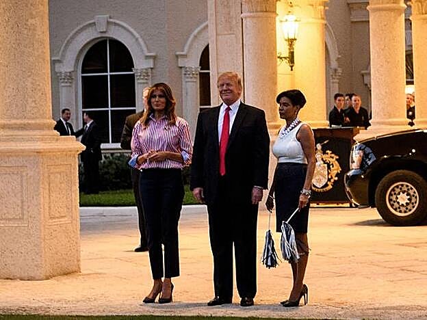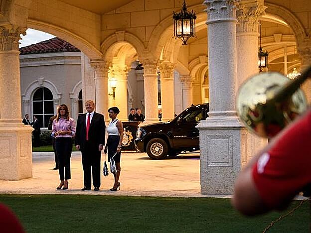 El matrimonio presidencial se encontraba en Palm Beach, donde tienen su residencia de recreo al sol de Florida, y fue allí donde acudieron a la marcha de bandas y 'cheerleaders' de la Florida Atlantic University. Melania Trump, no sabemos si como un guiño a las 'majorettes' que actuaban o a la Super Bowl que el año que viene se celebrará en Miami, se vistió de bandera de EE.UU. de pies a cabeza.