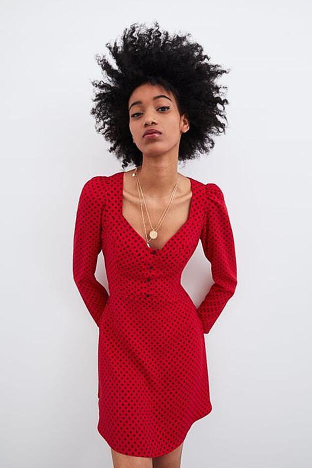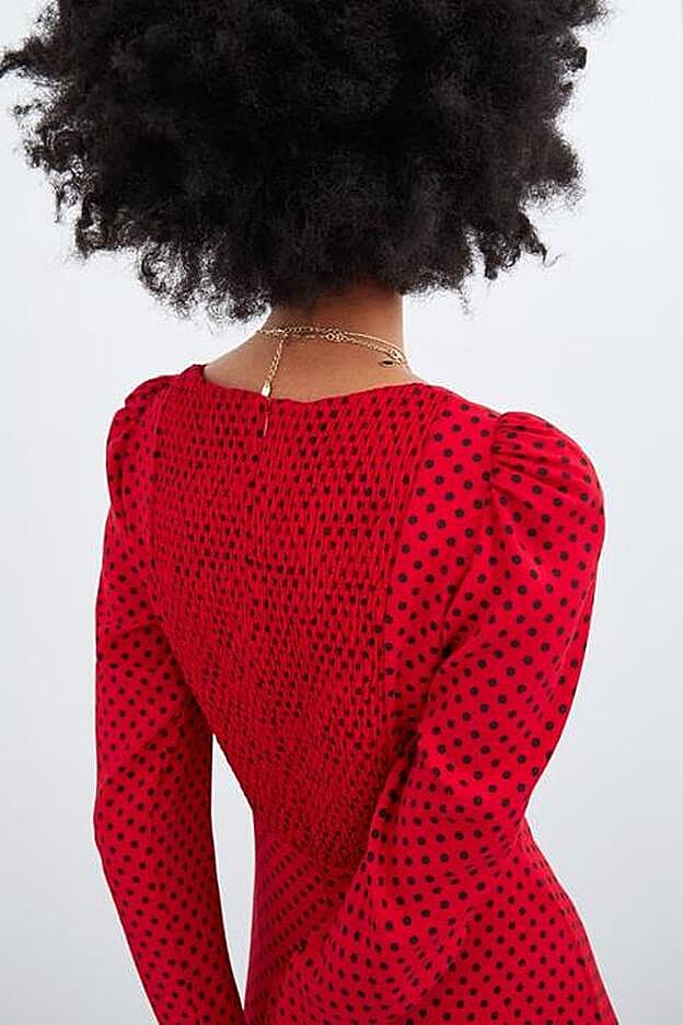 Estamos ante un caso de éxito que Zara conoce bien. Y es que crear el vestido que sienta bien a todas las tallas no es tarea fácil. Pero el gigante de Inditex nos ha dado una gran alegría con este maravilloso vestido de estética flamenca. Y es que no es solo tiene el estampado de la temporada, también es perfecto gracias a la forma de su escote -le queda bien a las que tienen mucho como poco pecho- y sus mangas largas y con la zona del hombro abullonada lo hacen ideal para el final de invierno y la primavera.