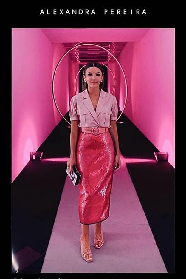 Alexandra Pereira eligió hace unos días un 'total look' de Redondo Brand formado por una blusa rosa empolvado de estilo masculino con bolsillos delanteros y hechura cruzada (69 euros), una maravillosa falda midi de lentejuelas fucsia (89 euros) y un cinturón con broche joya (49 euros), una combinación súper femenina y sofisticada que necesitamos para nuestra próxima boda de primavera. O para brillar con luz propia en la fiesta de la temporada. O para ir perfecta a una cena muy especial. O para cualquier excusa que se nos pueda pasar por la cabeza...
