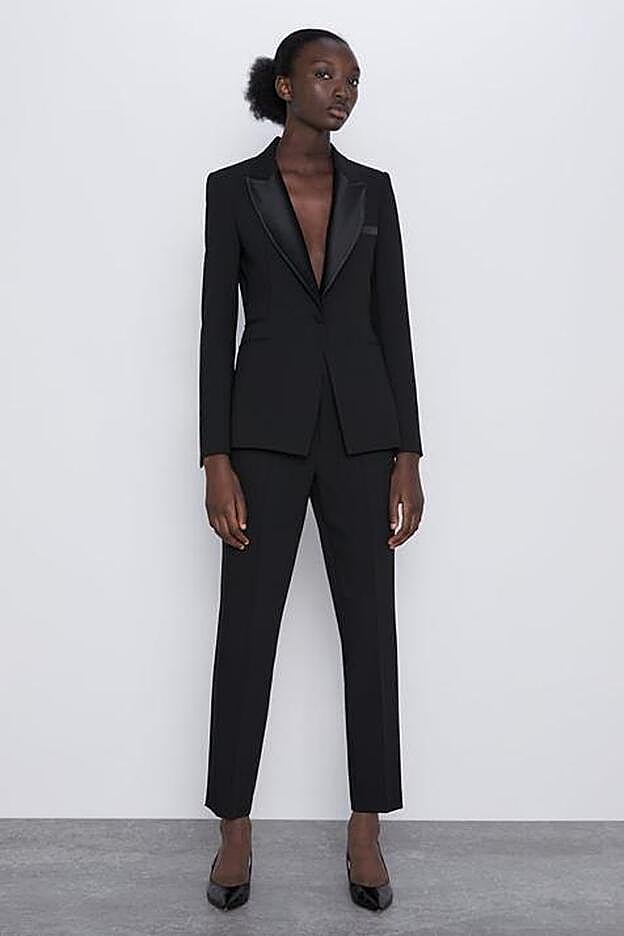 Un estilismo sobrio y elegante que la instagramer supo llevar de maravilla. Ha sido difícil encontrar una chaqueta tan exclusiva como la que ha llevado Rocío, pero en Zara hay un traje ideal tipo smoking con el que puedes copiar su idea. El modelo del gigante de Inditex se caracteriza por las solapas satinadas, lo que hacen que sea mucho más elegante que otro cualquiera. La blazer cuesta 49,95 euros y el pantalón 29,95 euros. Además, si lo que te ha gustado es el detalle colorido de la americana de Rocío, puedes atreverte y customizarlo tú misma añadiendo algún broche parecido.
