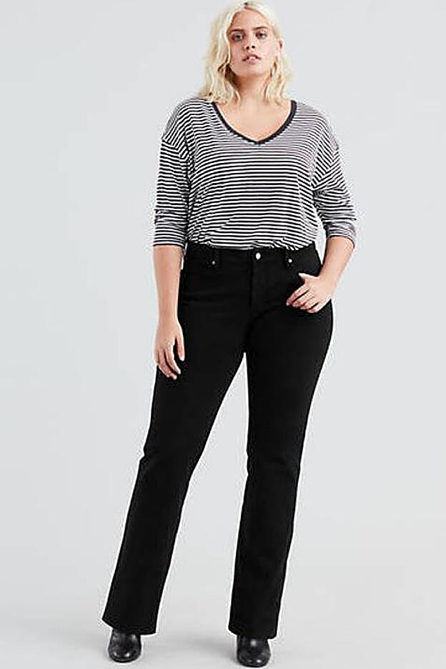 Estos vaqueros son inevitables: son probablemente los jeans perfectos para el fondo de armario. Tienen muchas cosas a su favor. La silueta bootcut ayuda muchísimo a afinar la pantorrila, más en este color negro irreprochable. El tiro es lo suficientemente alto como para abrochar en la cintura, moldeando perfectamente las caderas. Además, el tejido con componentes elásticos (Levi’s Sculpt con 4-Way Stretch) está pensando para alisar el vientre (lleva un panel en esta zona). Es caro, pero la inversión merece la pena porque su durabilidad es alta. Son el modelo 315 Shaping Bootcut Jeans de Levi's y cuestan 99 euros.