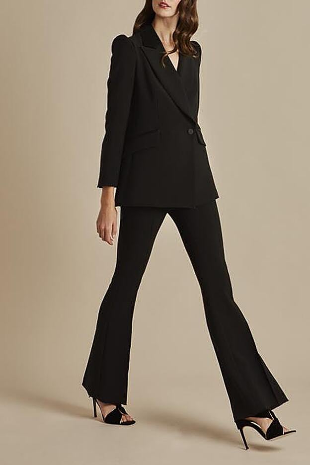 Ana Peleteiro fue una de las invitadas a una gala de premios del deporte. La atleta escogió para ese evento un traje negro de Name the brand. Un dos piezas formado por una blazer entallada, pero con cierto aire “oversize”, hombreras y los botones y detalles en raso. Cuesta 129,99 euros y tiene su pantalón a juego. Un modelo campana de tiro alto “super strech” y cremallera invisible lateral que cuesta 74,99 euros.