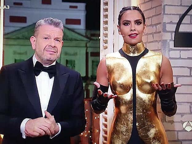 Más de 650 horas de trabajo del escultor han hecho realidad esta pieza titulada “Venus MMXX” que la presentadora ha lucido para dar la bienvenida al 2020.