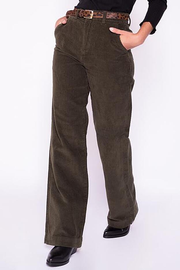 -Pantalones Chali de pana con efecto aterciopelado en color kaki. ¿Dónde? En la firma de la misma Sara Carbonero, Slow Love. ¿Cuánto? Antes 34,99 euros. Ahora 17,50 euros.