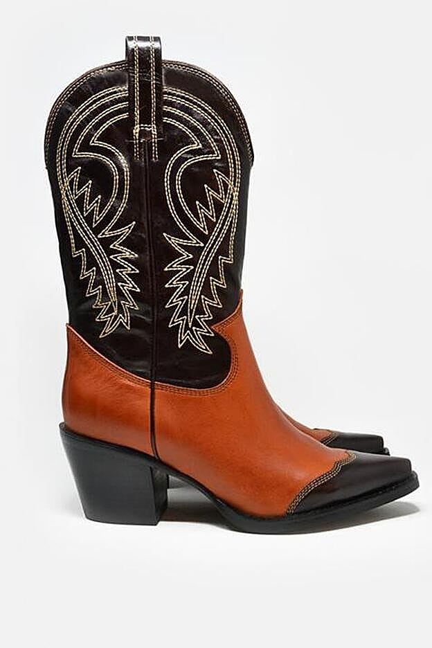 De todas las botas cowboy que las influencers han compartido, estas de María se llevan el premio a las más originales. Son un modelo de Jefrey Campbell que puedes comprar en Au Revoir Cindirella y que tienen la caña en color negro con bordados a contraste y el empeine naranja. Tienen un tacón muy cómodo y la puntera en negro. También se encuentran rebajadas de 260 euros a 170 euros. Un calzado con el que María ha demostrado que en ocasiones, arriesgar combinando prendas clásicas con otras más sofisticadas puede ser todo un acierto.