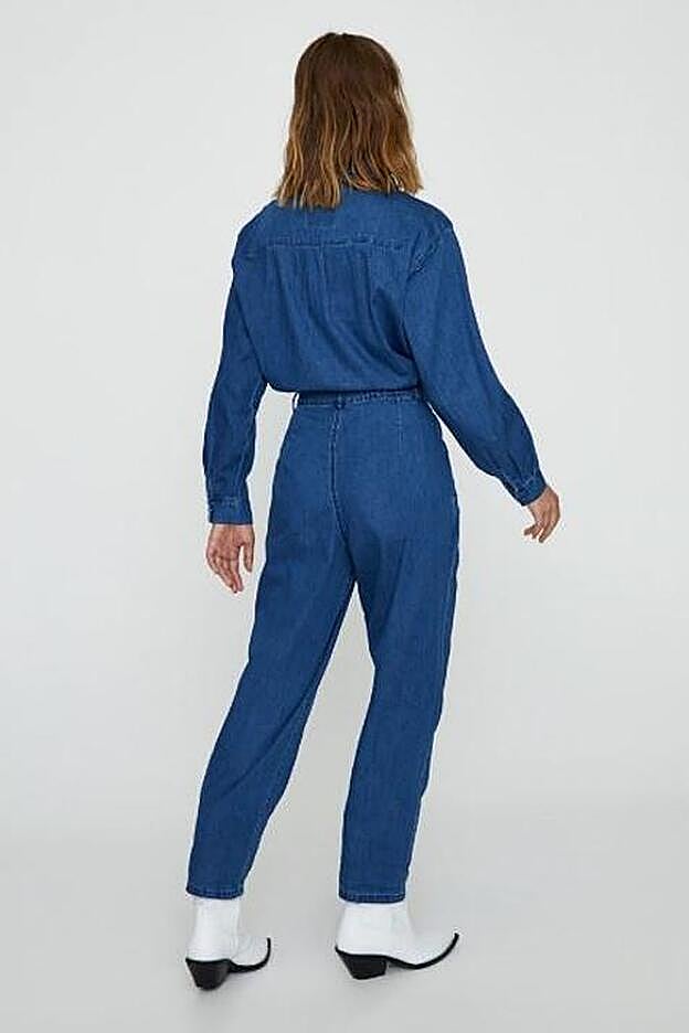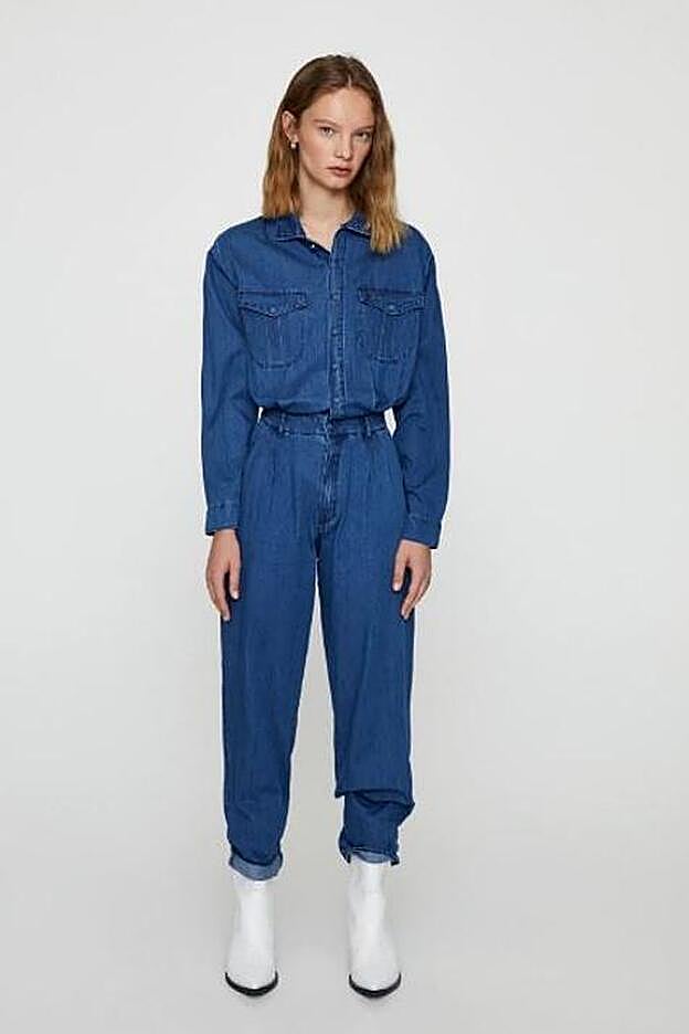 Confeccionado 100% en algodón, se trata de un mono largo en tejido vaquero, de manga larga, con cuello clásico, bolsillos delanteros, cierre mediante botones y dos detalles que estilizan cualquier silueta: las pinzas de los pantalones que nos recuerdan a los venerados slouchy y la goma elástica junto con las trabillas para incluir un cinturón que tanto se echa de menos en los monos.
