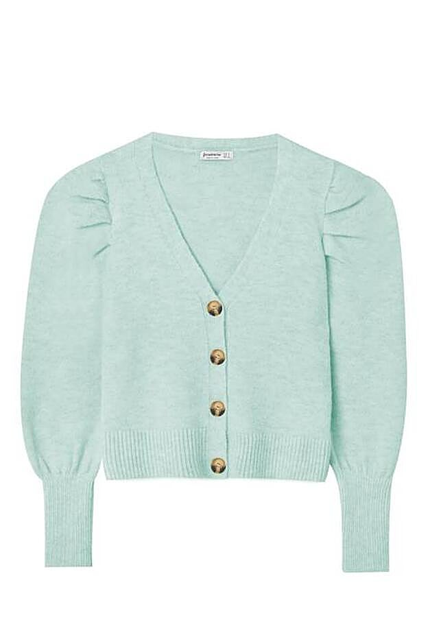 Pero la cosa no queda ahí. Este cárdigan de Stradivarius tiene dos detalles que marcan la diferencia: las favorecedoras mangas globo tan sofisticadas y elegantes, y el pronunciado escote en V que da lugar a numerosas combinaciones: con una camisea básica blanca como Laura Escanes, con un jersey de cuello para un extra de calorcito o en solitario para darle un toque más sexy.
