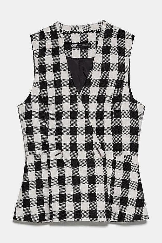 La diseñadora optó por combinarlos con una camisa blanca básica y el chaleco. Un modelo corto de cuadros bicolor en blanco y negro que cuesta 39,95 euros y que ya está agotado en la talla XL. Este diseño que ha compartido Rocío es perfecto porque gracias a su estampado y a sus tonalidades que combinan con todo consigue dar vida a cualquier look de básicos. La influencer optó por combinarlo con blanco y negro, pero es ideal para añadirlo, por ejemplo, a un vestido rojo. ¡Directo a nuestra wishlist!