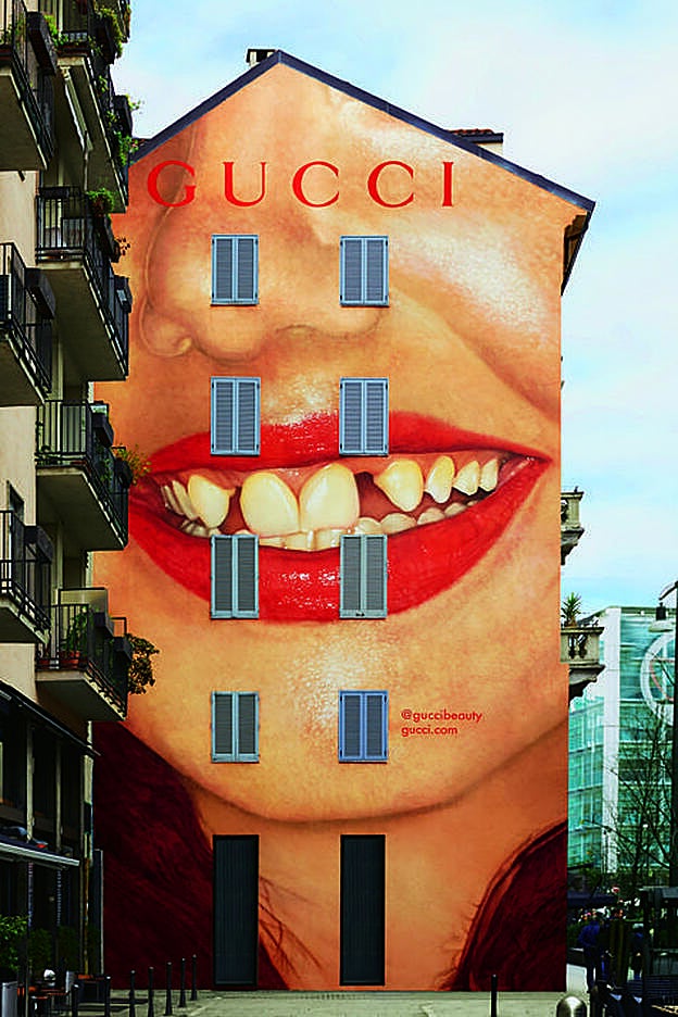 2. Gucci. Maquillajes murales: Los nuevos murales de Gucci potencian la belleza natural, imperfecta. Alessandro Michele encargó a Martin Parr, fotógrafo, y Christopher Simmonds, creativo, la campaña para Milán, Nueva York, México...