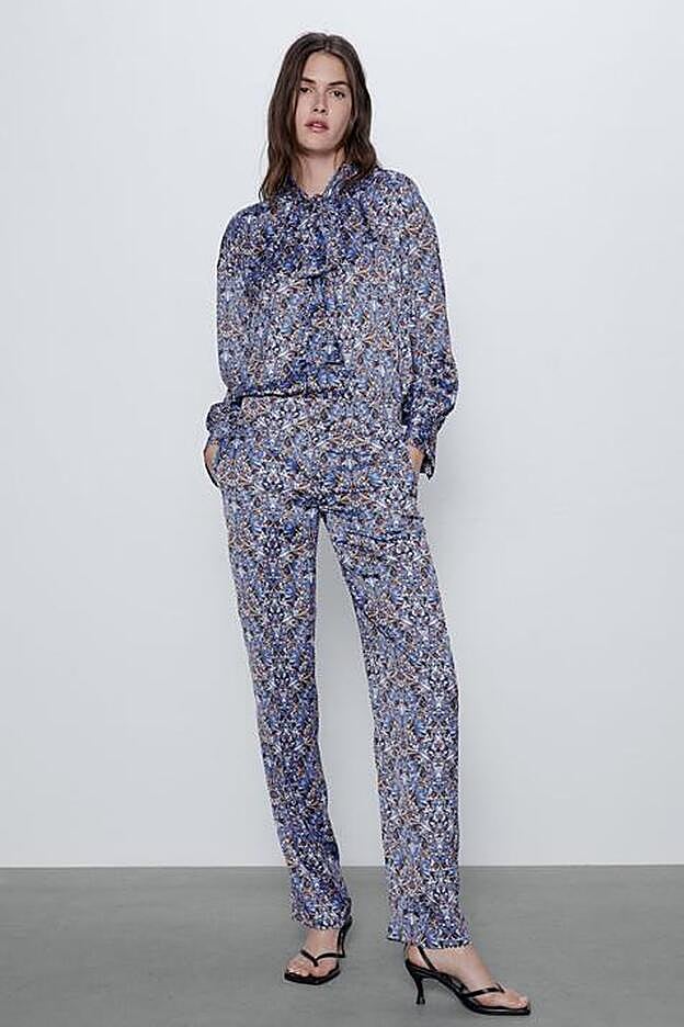 La influencer ha apostado todo a las flores y se ha hecho con una de las nuevas prendas que han llegado a Zara. Se trata de un conjunto de estampado de flores en tonos azules formado por un pantalón recto de tiro alto que cuestan 39,95 euros y una blusa a juego. Un diseño fluido de cuello subido con lazada y manga larga abullonada acabada en puño que cuesta 29,95 euros. Dos prendas ideales por separado y que María se ha atrevido a vestir juntas. Una decisión que fue todo un acierto gracias a la manera de combinarlas.