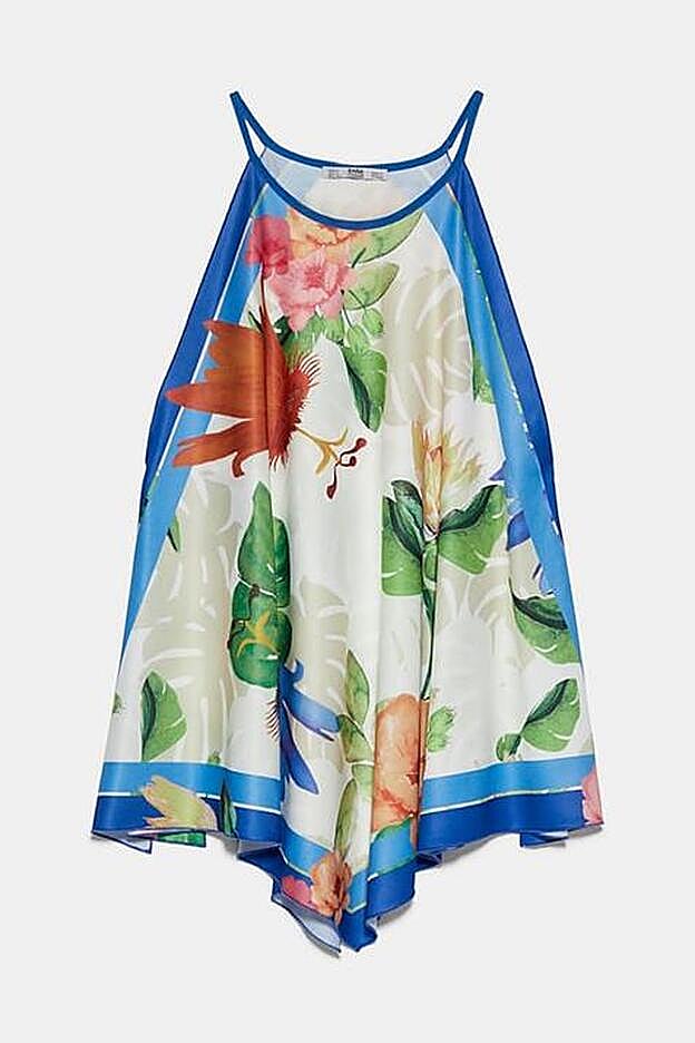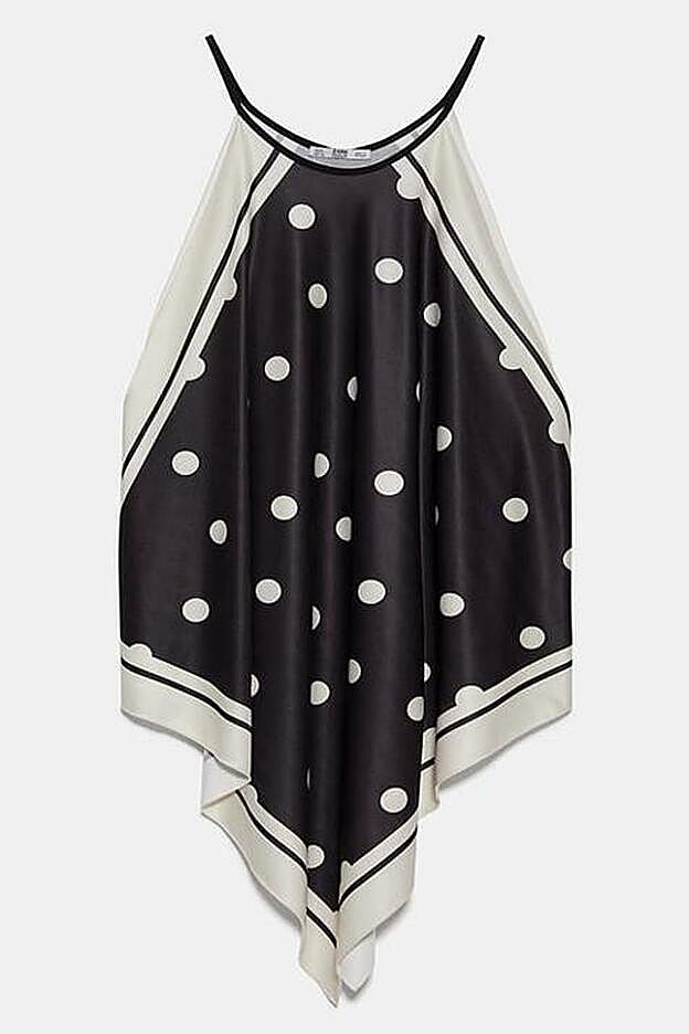 Por otro lado, está el top a juego con el mismo estampado con el bajo en forma de pico y cuello halter simulando así la forma de un pañuelo. Un cuerpo muy original que puedes llevar tanto por dentro como por fuera del pantalón y que cuesta 12,95 euros. Por lo que te puedes hacer con el conjunto entero por algo más de 30 euros. No está nada mal, ¿verdad?