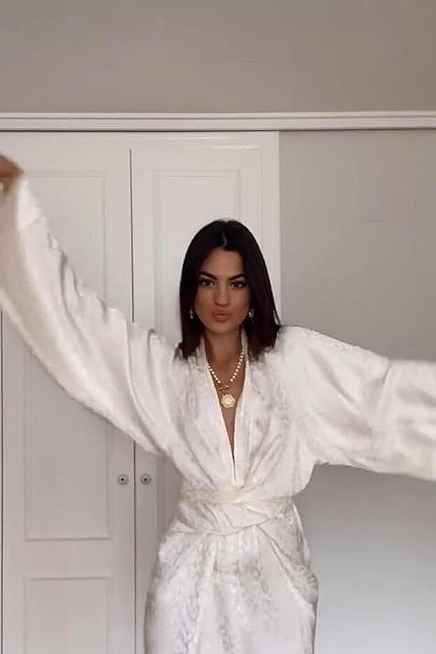 El vestido blanco es un básico que siempre debes tener en tu armario. Marta propone este de Rat and Boa satinado con mangas ancgas, cintura marcada y escote en pico.