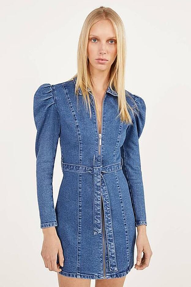 Las prendas denim son las protagonistas de las colecciones de algunas firmas como Lefties. En Berhka también se han unido a la tendencia que nunca pasa de moda con este vestido mini con cierre de crealleta y manga abullonada. Costaba 29,99 euros y ahora te puedes hacer con él por 17,99 euros.