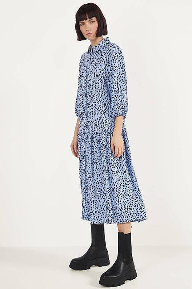 El vestido midi estampado es esa prenda comodín que alcanzó su máximo auge la temporada pasada y que este año continua como uno de los 'must have' de tu armario. Existen un sinfín de modelos en diferentes colores, tejidos y estampados, y Bershka ya ha rebajado este ideal en color azul con puntos negros y que ahora cuesta 15,99 euros, en vez de 25,99 euros.