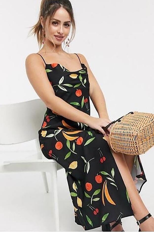 Si eres como nosotras y te hubiera gustado poder añadir a nuestra wishlist de después del confinamiento este vestido, no te preocupes porque hemos encontrado la solución en Asos. La web multimarca tiene un sinfín de vestidos y es ahí donde hay un modelo largo de tirantes y con un estampado parecido que también nos ha enamorado.