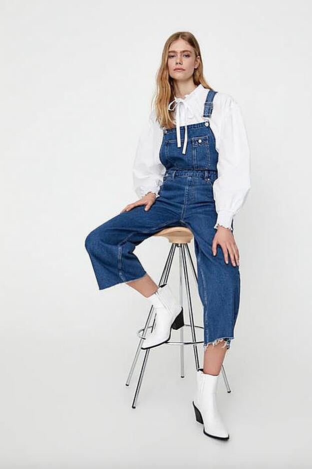 Tal y como ella misma compartió en su cuenta de Instagram, la camisa pertenece a Claudie Pierlot mientras que el peto pertenece al catálogo de la firma francesa Sezanne. Pero es una prenda que también podemos encontrar en algunas de nuestras firmas favoritas, incluiso en colores menos tradicionales para el denim.