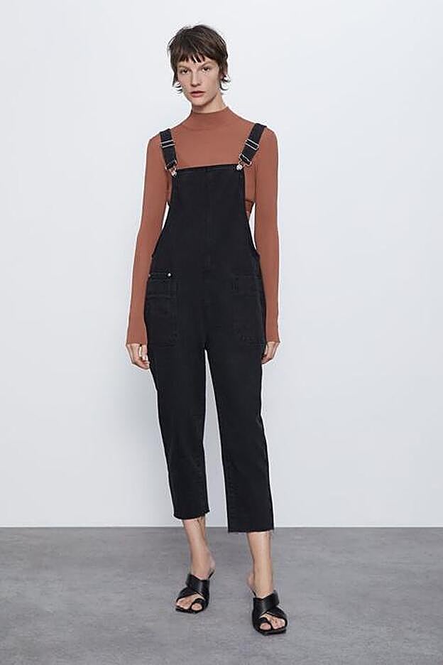 En Zara, por 39,95 euros y entre las tallas XS y XL hemos encontrado este peto negro con escote cuadrado ideal para las que busquen una versión menos vaquera. Con bolsillos delanteros y traseros de plastrón, el bajo queda por los tobillos.
