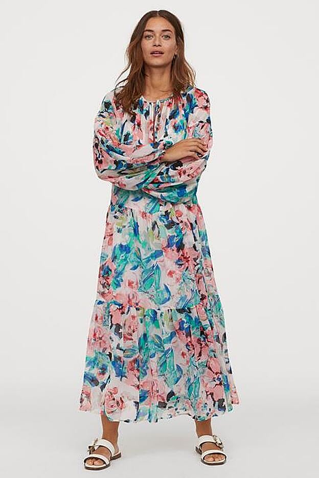 Tercero porque está disponible en dos colores distintos y no sabemos con cuál quedarnos: si con el irresistible tono rosa cereza o con el estampado de flores que combina el rosa empolvado con la intensidad de los azules eléctricos y que es pura tendencia esta temporada. Por no hablar de sus mangas globo y su escote a pico ultra favorecedor.