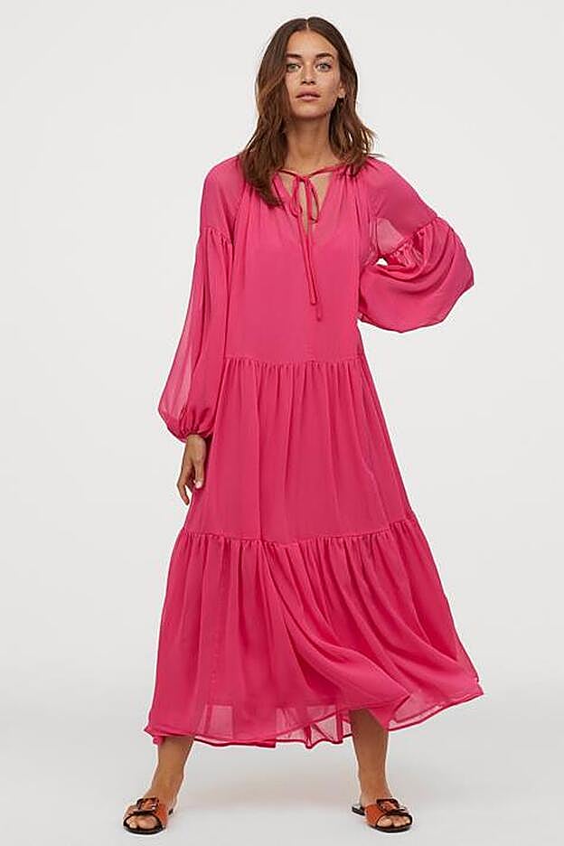 Primero porque su silueta fluida, oversize y acampanada sienta bien a cualquier figura (gracias a su amplio rango de tallas, desde la XS a la XXL) y es de lo más cómoda para llevar puesto las 24 horas del día, todos los días de la semana. Lo que significa que este vestido de H&M no solo es ideal para ir al trabajo, para ir de compras o para viajar, también lo será para las esperadas noches de verano en vacaciones en las que no sepas qué meter en la maleta y con las que ya estamos soñando.