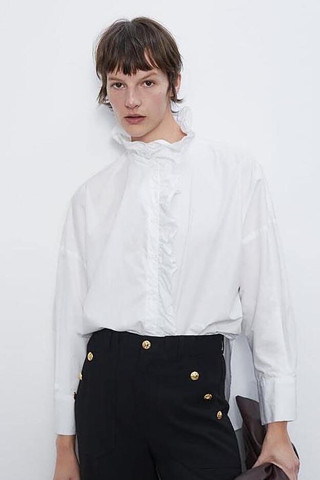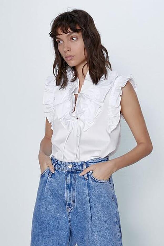 Sin embargo, al ser una de las prendas con más éxito, Zara ha sacado a la venta diferentes modelos similares para que puedas copiar este lookazo de la instagramer. El primero es uno también de manga larga que tiene el volante en el cuello redondo, en vez de en forma de pico como la de Rocío. Cuesta 25,95 euros y está disponible desde la talla XS a la XL.