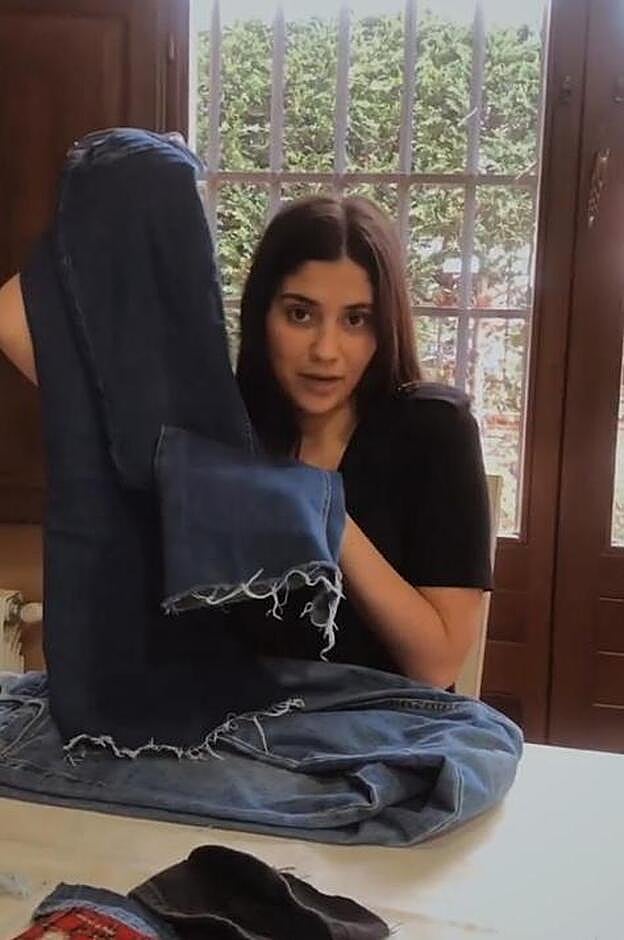 La influencer explicó que en ocasiones le apetece cambiar una prenda que ya no le apetece tanto ponerse y prueba a cortar el bajo para modificarla un poco. Primero selecciona la medida de la que se quiere deshacer y después de cortar ambas perneras, comienza a deshilacharlo con unas tijeras para conseguir un bajo con flecos. "Se tarda un poco, pero es un buen plan para hacer mientras ves una peli o una serie", ha comentado María. Y nos encanta la idea.