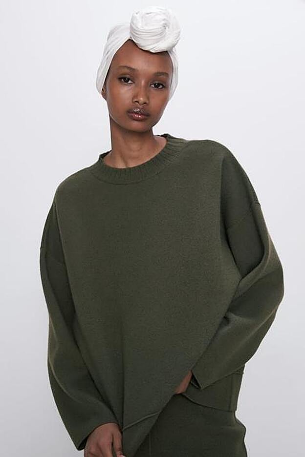El protagonista de este look de Alba Díaz es sin duda un jersey que como ella misma ha indicado en su publicación es de Zara. Se trata de una prenda que a primera vista parece una sudadera por su cuello perkins y su corte oversize. Sin embargo es un jersey de punto en color caqui que se encuentra disponible en la web de la firma por 29,95 euros. Ideal porque es muy fácil de combinar y parece de lo más cómodo. ¡Lo más!