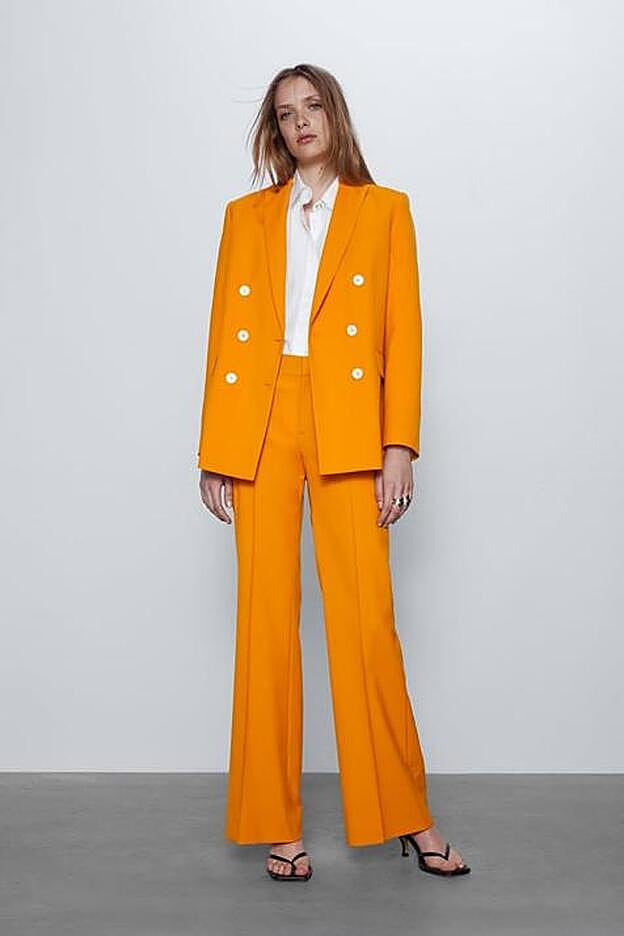 Este es sin duda, nuestro favorito. Este dos piezas demuestra que aquello de "orange is the new black", además del título de una serie, es una verdad universal. ¿Quién no se pondría de buen humor llevando un traje así? ¡Creemos que nadie! La americana cuesta 39,99 euros y el pantalón 19,99 euros. Y están disponibles hasta la XXL, no decimos más...