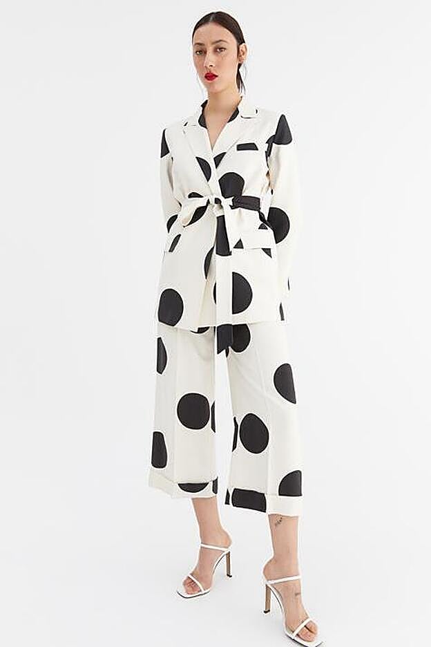 Ya hemos hablado un sinfín de veces que el traje es una apuesta ganadora, una opción con la que te aseguras triunfar y que además puedes reutlizar luego por separado. Invertir en un conjunto de dos piezas es todo un acierto y más si se trata de un diseño original como el que ha sacado Sfera. La firma que, a pesar del confinamiento, continua con su venta online ha traído un traje de lunares muy diferente que puede convertirse en el look de invitada perfecto.