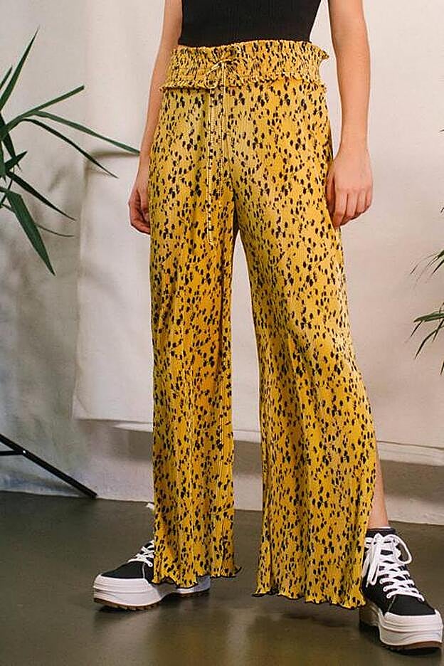 El más llamativo es este en color mostaza, con cintura elástica ajustada con cordón y estampado de leopardo en tonos negros. Tiene un precio de 17,99 euros y está disponible entre las tallas XS y L.