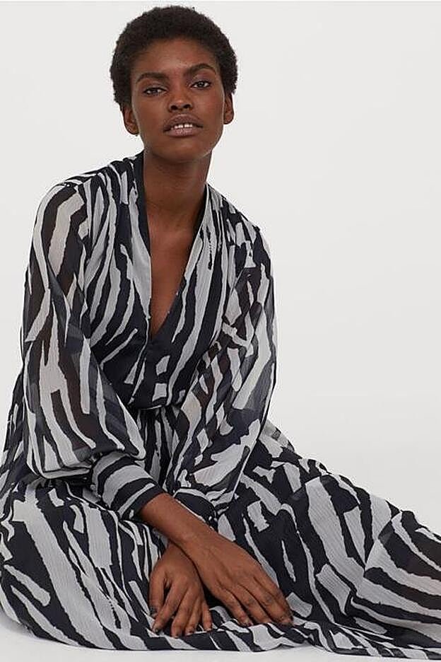 H&M también se ha subido al carro de la tendencia y tiene múltiples modelos y prendas para que luzcas el estampado. Este vestido es la opción sobresaliente para el entretiempo: de gasa, suelto y con escote pico, solo necesitas unos zapatos cómodos. Cuesta 49,99 euros.