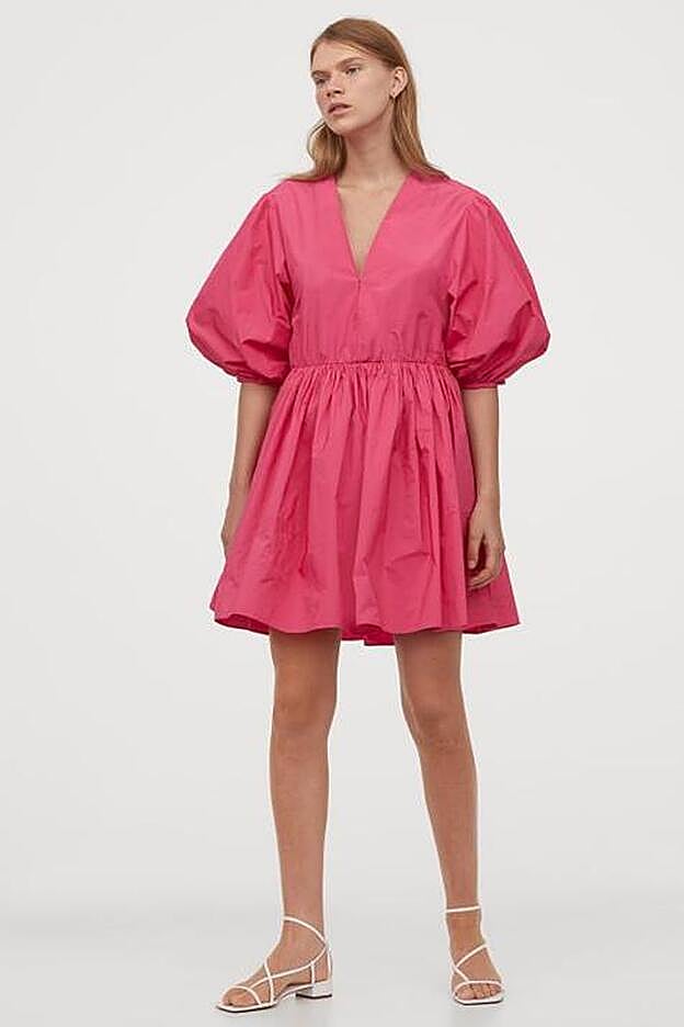 Se trata de un diseño con escote de pico profundo, manga media abullonada con puños y costura elástica en la cintura en color rosa y que también se encuentra disponible en color beigue. Cuesta 49,99 euros y está agotado en todas las tallas en ambos colores. Y no es para menos porque es un modelo muy fresquito y muy estilizador gracias al escote en V, las mangas con volumen que arman la figura y el fruncido en la cintura que marca la silueta. Si tú también te has enamorado de él, tranquila porque según indica la web de H&M volverá. ¡Menos mal!