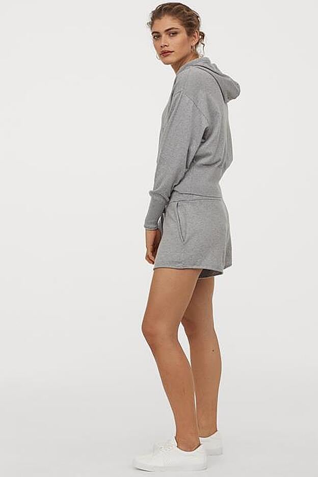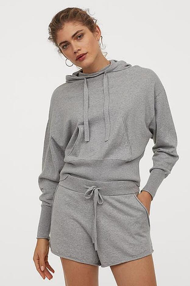 Los pantalones cortos en punto fino son de H&M y están confeccionados en mezcla de cachemira y algodón suave. Con cintura ancha elástica de canalé, viene con un cordón ancho para ajustarlo.