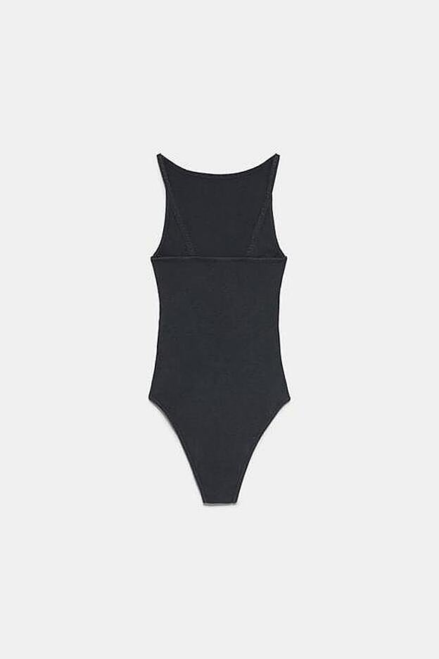 Continuando con los tonos básicos, y con cuello halter, Zara ha lanzado una colección de bodys efecto lavado en blanco, gris oscuro y beige. Cuestan 12,95 euros y los tres están disponibles en las tallas S, M y L.