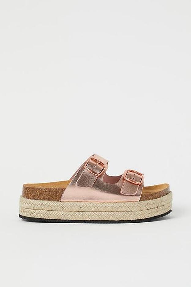 Si planeas pasarte el verano en zapato plano, pero no quieres renunciar a unos centímetros extra, hemos dado con el modelo perfecto: esta sandalia con plataforma y de piel, es un 'must' para cualquier look veraniego. Si nos apuras, las puedes llevar hasta a la playa. Cuestan 49,99 euros.