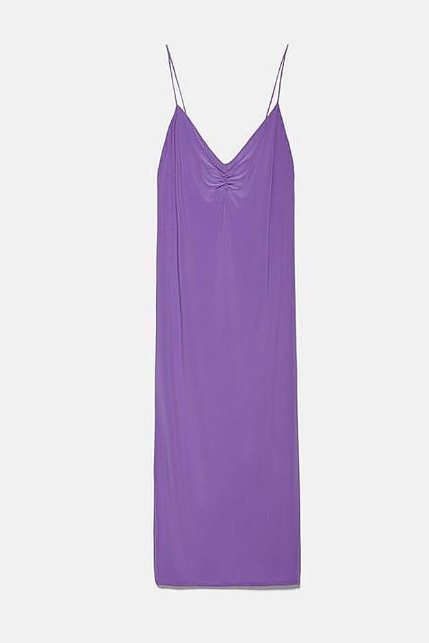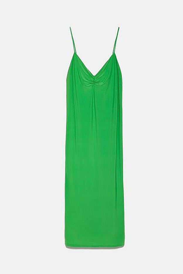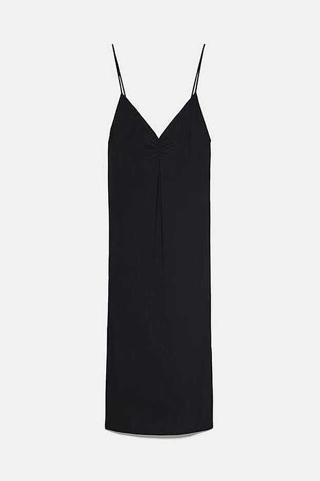 Fluidos, con escote a pico fruncido y tirantes finos ajustables. Estos vestidos lenceros de Zara son muy bonitos, baratos (cuestan menos de 20 euros) y son muy fáciles de combinar con todo tipo de estilismos. Con zapatillas blancas, con sandalias de rafia y esparto o con zapatos de tacón fino.