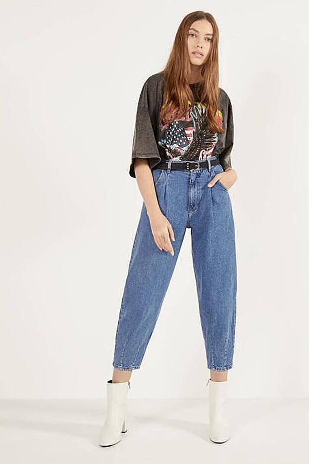 La también presentadora publicó una imagen en Instagram con un jean de una versión actualizada del slouchy que ha comprado en Bershka: el Balloon Fit. Un modelo caracterizado por las pinzas en la cintura y su pernera abombada que se estrecha en el tobillo. Cuestan 25,99 euros y están disponibles aquí desde la talla 32 a la 42 y en diferentes colores como beige o blancos.