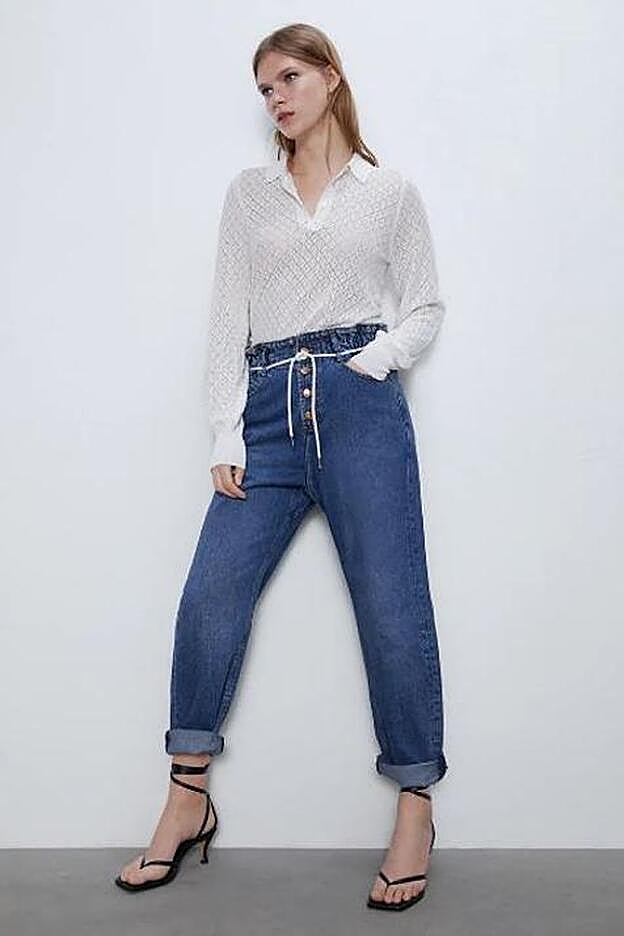 Se trata de unos jeans de corte baggy, uno de los diseños más cómodos de la temporada que se hicieron tendencia al sustituir a los slouchy y que se han convertido en todo un acierto. En concreto es el modelo Z1975 en azul medio que tiene como elemento a destacar el cierre con botones visible y una cuerda como cinturón. Un modelo muy original que costaba 25,95 euros y ahora puedes encontrarlos en la sección de Special Prices del gigante de Inditex por 12,99 euros.