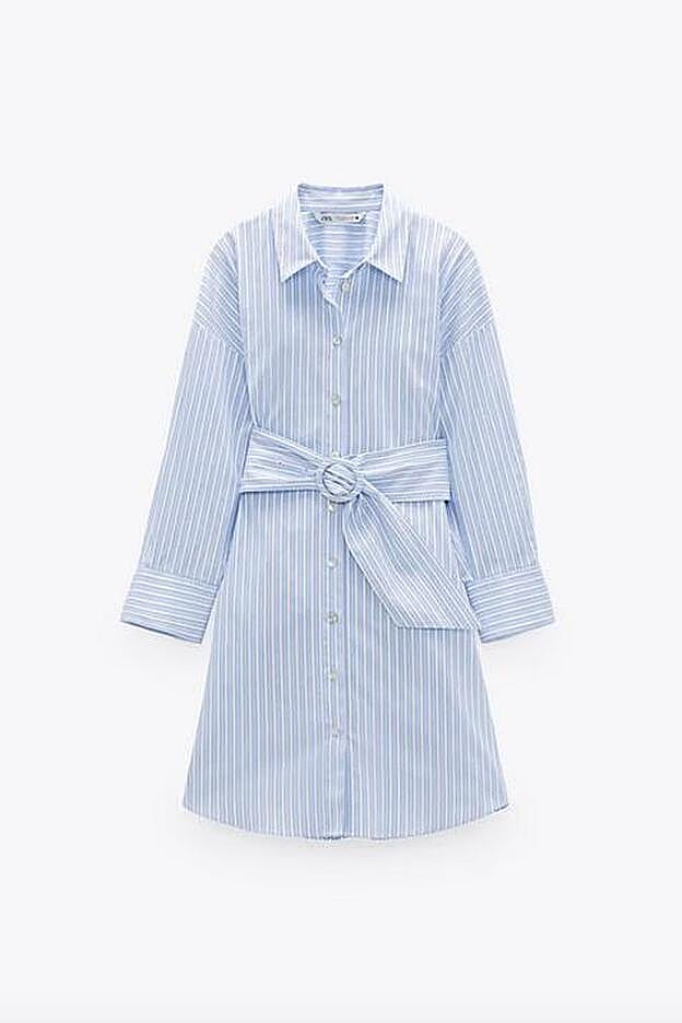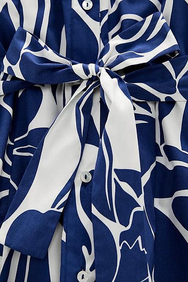 Con cierre delantero de botones blancos y cinturón con lazada a tono, cuesta 39,95 euros y está disponible entre las tallas XS y XXL.
