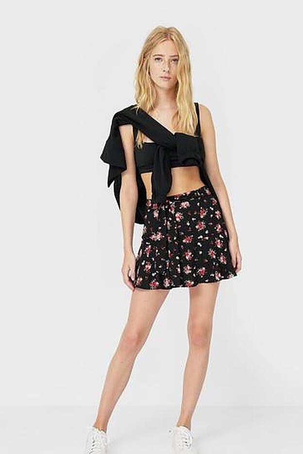Se trata de una falda pantalón fluida estampada, de tiro alto con detalle de lazo en cintura y bajo acabado en volante. Un diseño muy mono que lo mejor está en su precio. ¡Cuesta solo 15,99 euros! Un chollo, ¿verdad? Mejor que muchas prendas de rebajas. Pero es que además, puedes comprarla en estampado de lunares blanca y negra para unirte a la tendencia de la temporada, en diferentes tipos de flores, en malva -el color de la temporada- y hasta de animal print.