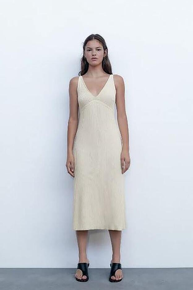 Un look que si te ha gustado tanto como a nosotras puedes copiar muy fácilmente en Zara. Y es que el gigante de Inditex tiene un diseño muy similar por 25,95 euros. Se trata de un vestido en color crudo confeccionado con tejido en mezcla de algodón, que tiene el escote pico y tirantes anchos. ¿Preparada para triunfar como Sara?