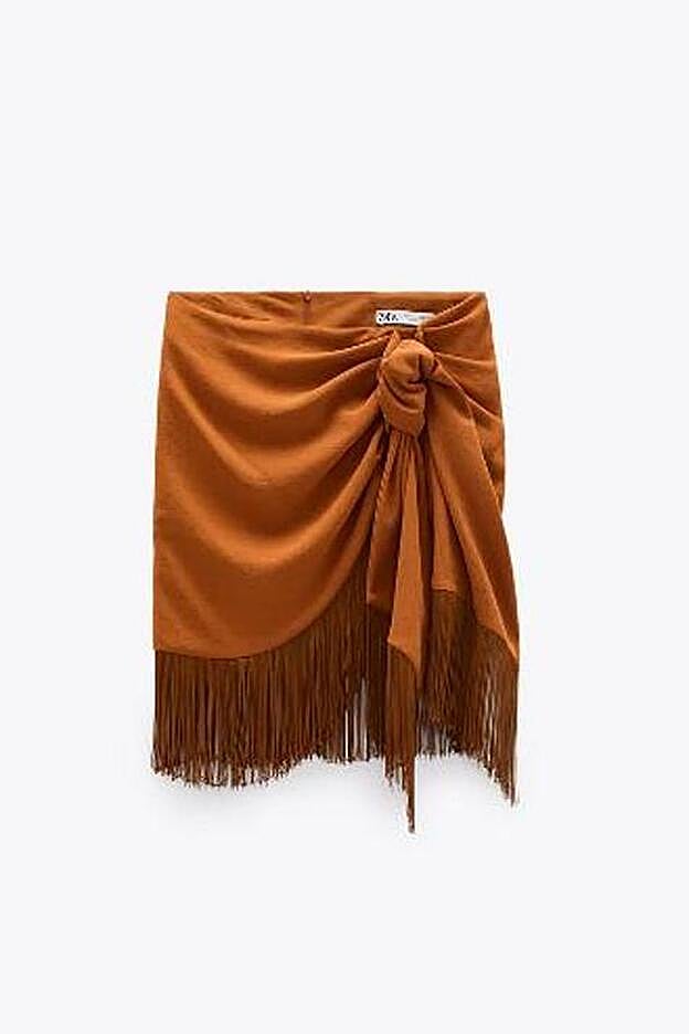 Los flecos son siempre un acierto y un elemento que aporta estilo a cuna prenda. Cuando algunas de las firmas low cost sacan a a la venta algún producto con flecos, se agota muy rápido y alcanza el éxito en muy poco tiempo. Algo que ha ocurrido con una de las novedades del gigante de Inditex. Zara ha tarído una falda mini, de tiro alto, en color teja y que es tipo pareo gracias al detalle de frunces y la lazada en lateral. Sin embargo, lo mejor es el bajo con aplicación de flecos. Cuesta 29,95 euros y nos gusta no solo por su diseño, si no también por su versatilidad.