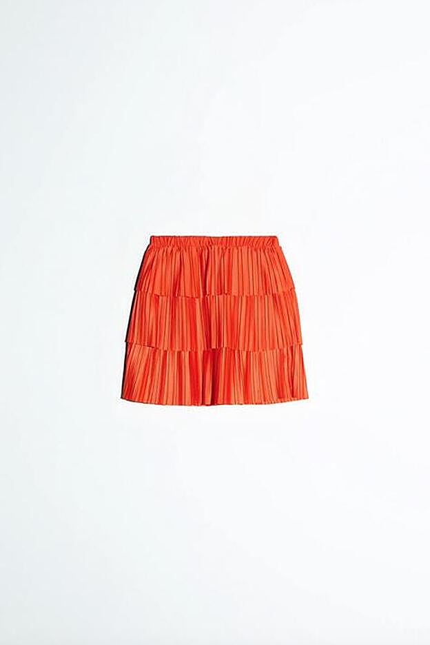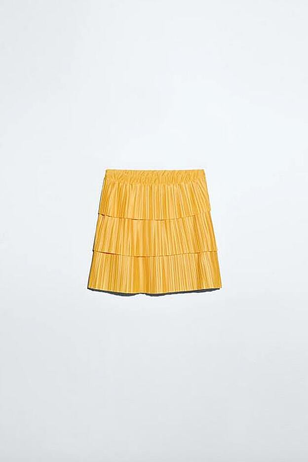 Para aquellas que apuesten por los colores vistosos, Zara ha lanzado el mismo diseño de volantes plisados y cintura elástica en amarillo vivo. También cuesta 17,95 euros y está disponible en las tallas S, M y L.