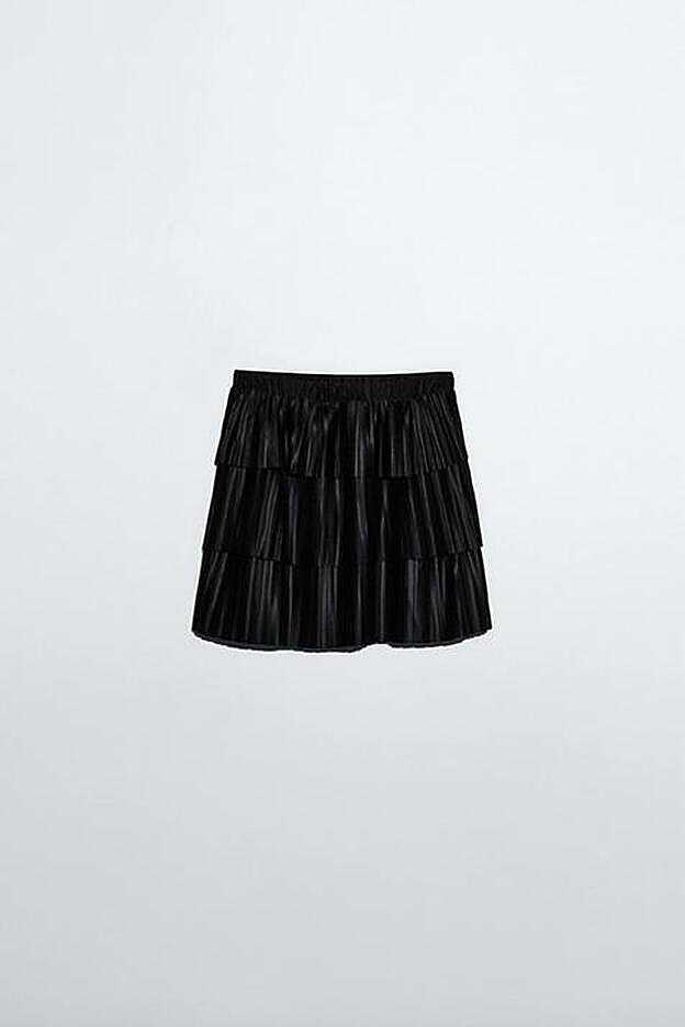 La menos original, pero también a la que más partido podemos sacar, es esta falda mini plisada de tiro alto con cintura elástica en color negro. Tiene un precio de 17,95 euros y está disponible en las tallas S, M y L.