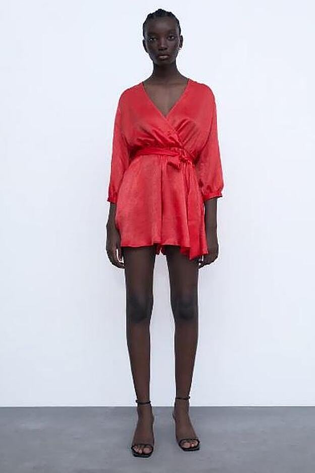 Se trata de un mono de escote pico y manga larga que parece un vestido y que está protagonizado por un rojo frambuesa ideal y muy favorecedor. La prenda es de corte fluido, por lo que favorece a todo tipo de siluetas y viene con un cinturón-lazo incorporado que permite ajustarla en la cintura y marcar así la figura estilizándola. ¿La pena? Que .a pesar de su precio low cost -29,95 euros- está completamente agotado en la web de la marca. Eso sí, nos ha gustado tanto que no vamos a dudar en buscarlo en tienda.