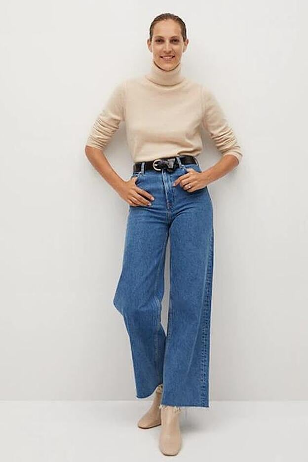 Los wide leg llegan hasta el ombligo adaptándose perfectamente a la cintura, se ajustan en los muslos y caen en campana desde la rodilla hasta los tobillos. Un patrón que visualmente son todo un acierto para cualquier silueta y sobre todo, para cualquier edad.