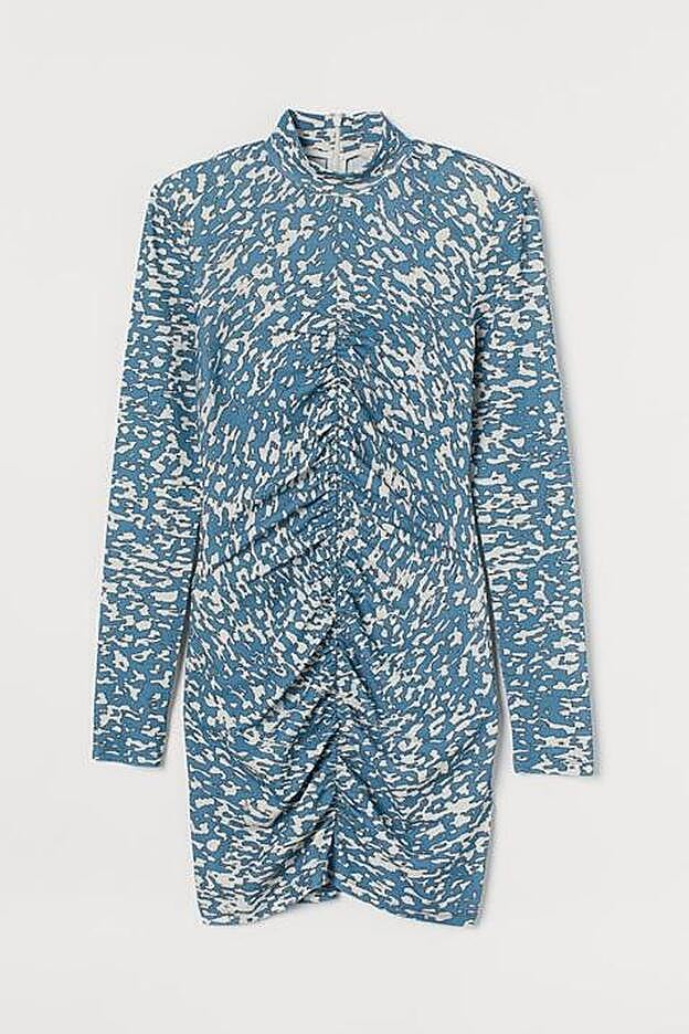 Nagore lució para el estreno de esta nueva temporada del programa del amor un vestido mini de manga larga con un estampado muy original en color azul y blanco. Un diseño llamativo y que no pasó desapercibido para sus seguidores. Tanto gustó en redes el look, que la presentadora no ha tenido más remedio que desvelar de dónde es la prenda. Se trata de un vestido de H&M de punto con elástico vertical oculto en el frente para un efecto drapeado que cuesta 39,99 euros.