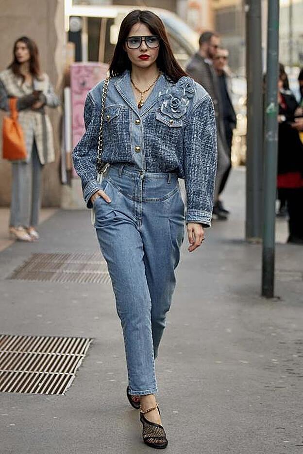 Que los orígenes humildes del denim no te confundan porque darle una pátina de clase y elegancia es tan sencillo como apostar por el tweed. Una chaqueta que representa los valores de la nueva elegancia francesa, rematada con un par de zapatos de tacón midi.