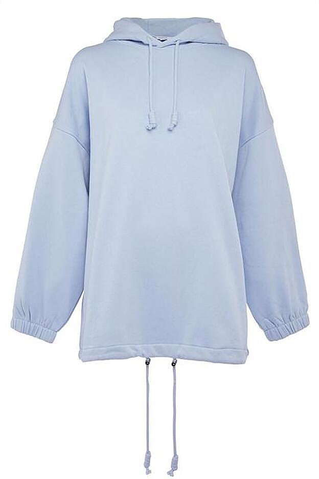 Se trata de un modelo oversize, con forro polar, capucha, goma en las mangas y bajo modulable para que la puedas llevar larga, en la cadera, en la cintura... ¿Cómo? Con un cordón con apliques al final que te hará la vida más fácil. Y más cómoda. Palabra de una servidora (que ya se ha hecho con ella), es la prenda más cómoda que encontrarás. Si quieres un look off duty, combínala con unos vaqueros pitillo y unas sneakers. La mascarilla y las gafas de sol harán el resto: irás de incógnito. Si tu plan es ir a yoga, lánzala encima de tus leggins y tu sujetador deportivo (por cierto, aquí te explicamos cómo elegir el mejor) y lista para hacer saludos al sol. ¿Que estás viviendo un momento Carrie y quieres ir con las piernas al aire por tu piso (no en Nueva York) mientras esperas a Mr. Big? Perfecto, también te sirve. Este modelo tiene más vidas que un gato y su precio, lo merece.